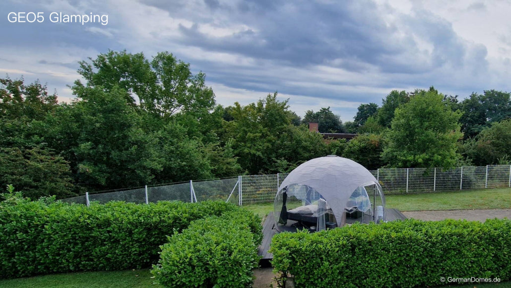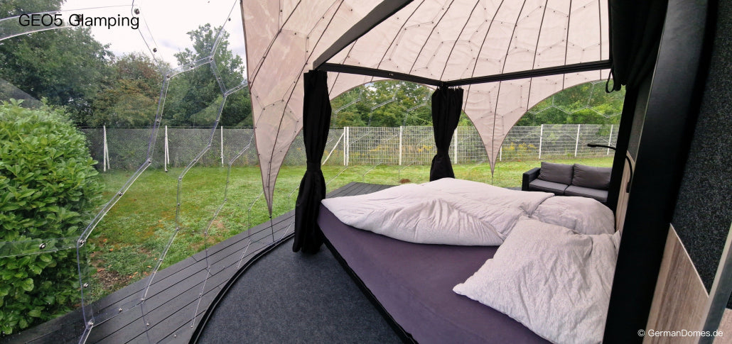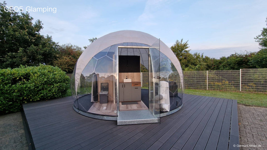 Erleben Sie stilvolles Camping in einer geodätischen Kuppel – mit maximalem Komfort und direktem Naturerlebnis.