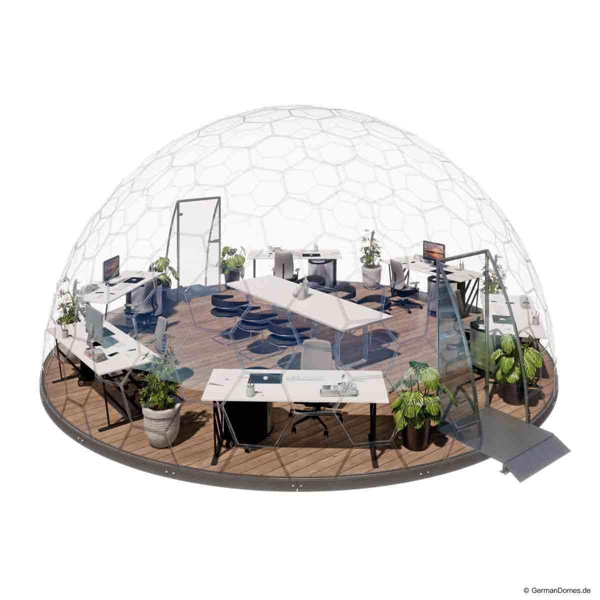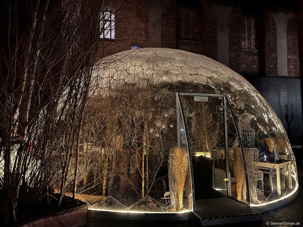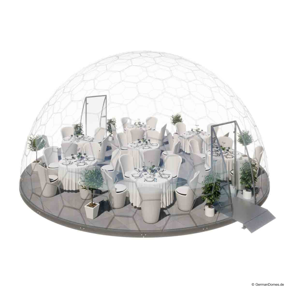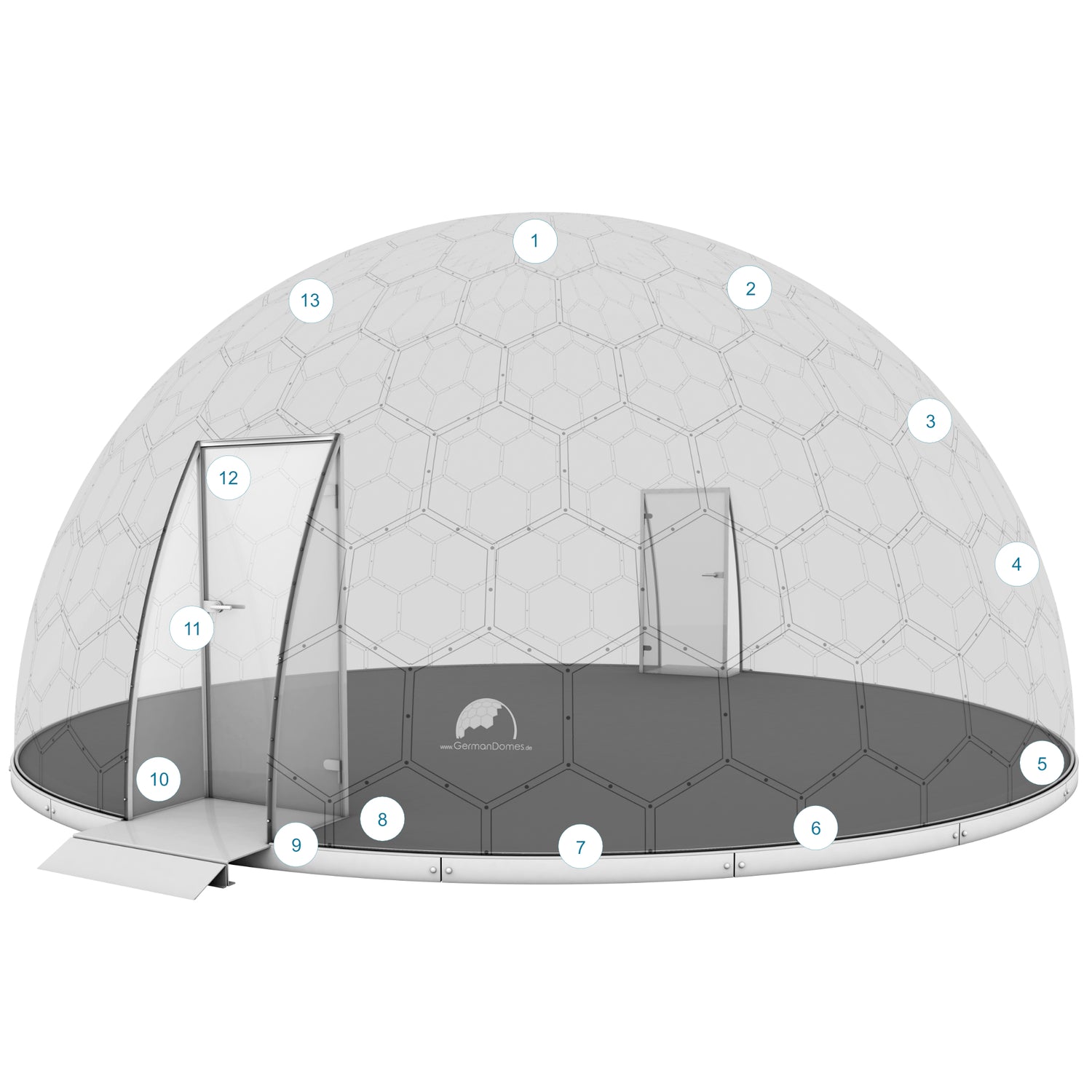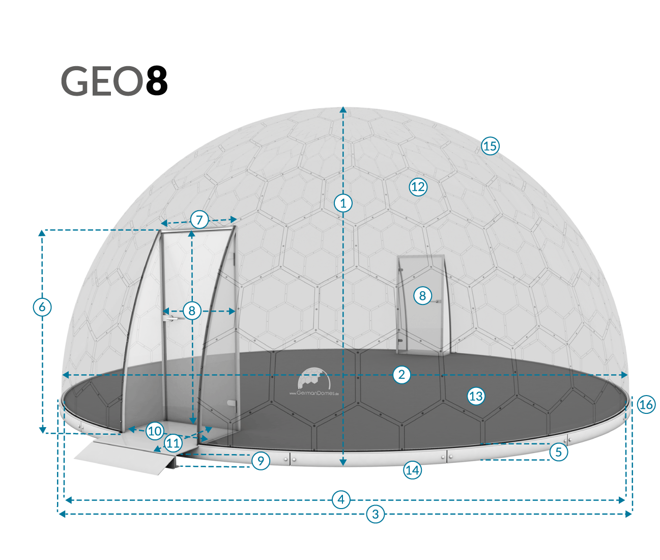 Der GermanDomes GEO8 ist eine beeindruckend große, transparente geodätische Kuppel für einzigartige Naturmomente mit viel Raum. Gefertigt aus hochwertigem Makrolon, bietet sie maximale Haltbarkeit und eine spektakuläre Panorama-Sicht. Perfekt für Premium-Glamping, exklusive Events oder als stilvolle Outdoor-Lounge mit Wow-Effekt.