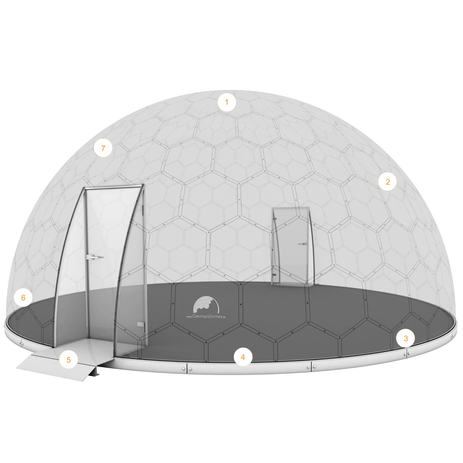 Die Kuppeln von GermanDomes wurden entwickelt und konstruiert, um deren Nutzern allumfänglichen Schutz vor allen Widrigkeiten der Natur zu gewähren. Die aus massiven, korrosionsgeschützten Stahlelementen gefertigten Fundamentringe geben den geodätischen Kuppeln von GermanDomes einen soliden Unterbau. Aufwendige statische Berechnungen, Verschiebe- und Windgutachten sowie intensive Tests unter härtesten Bedingungen haben gezeigt, wie robust und widerstandsfähig die Gesamtkonstruktion sich jeder auch noch so extremen Anforderung stellt.